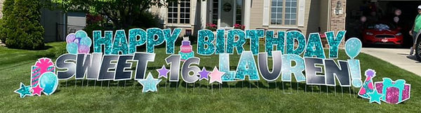 Included: We design a custom yard display for you and send you a photo for approval. We also set up the display the evening before your event and take it down the morning after.